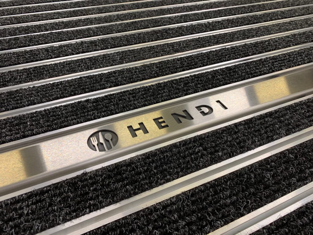 Tapis personnalisé avec gravure et logo.