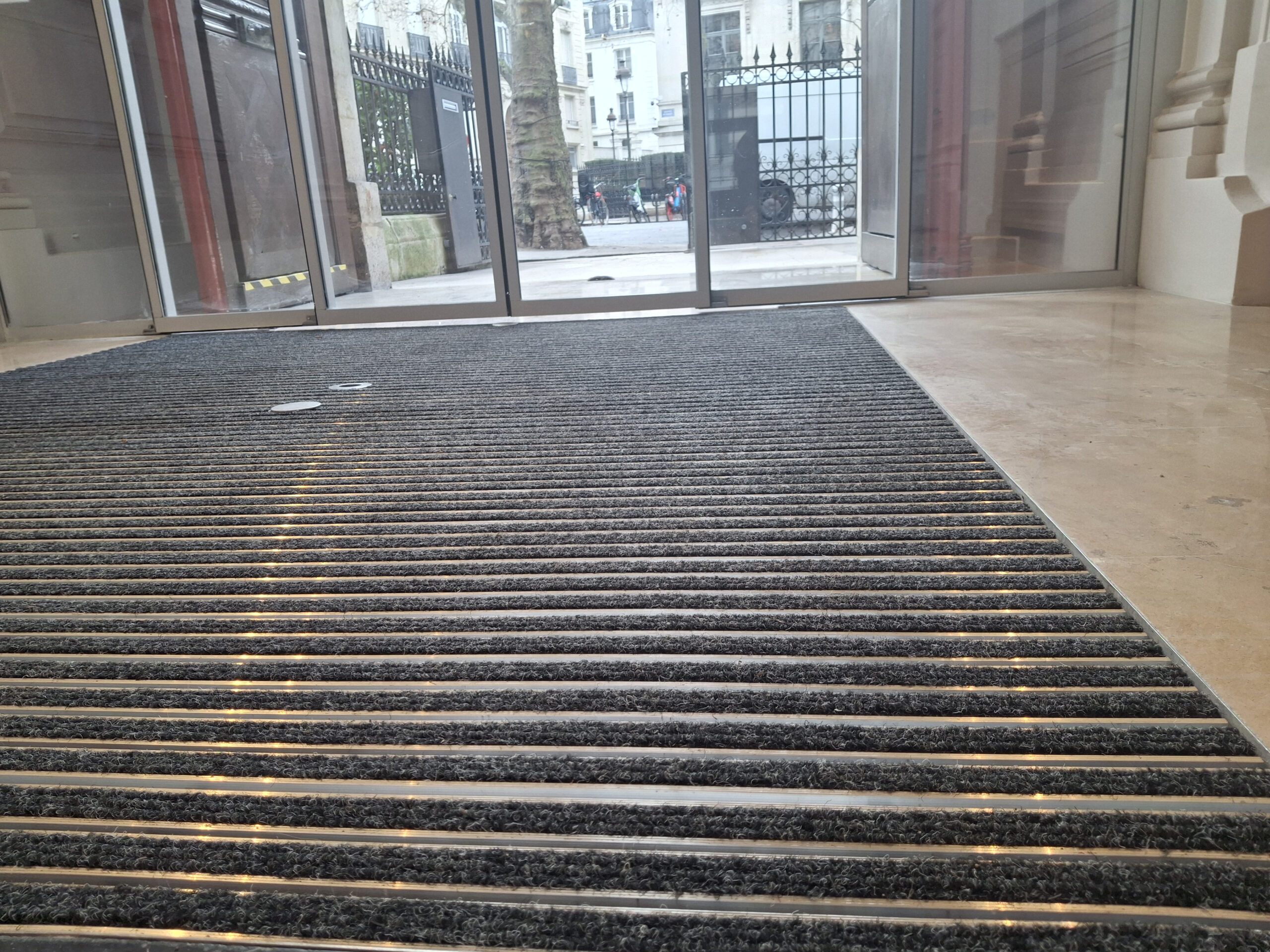 Tapis reps anthracite pour entrée de bureaux.